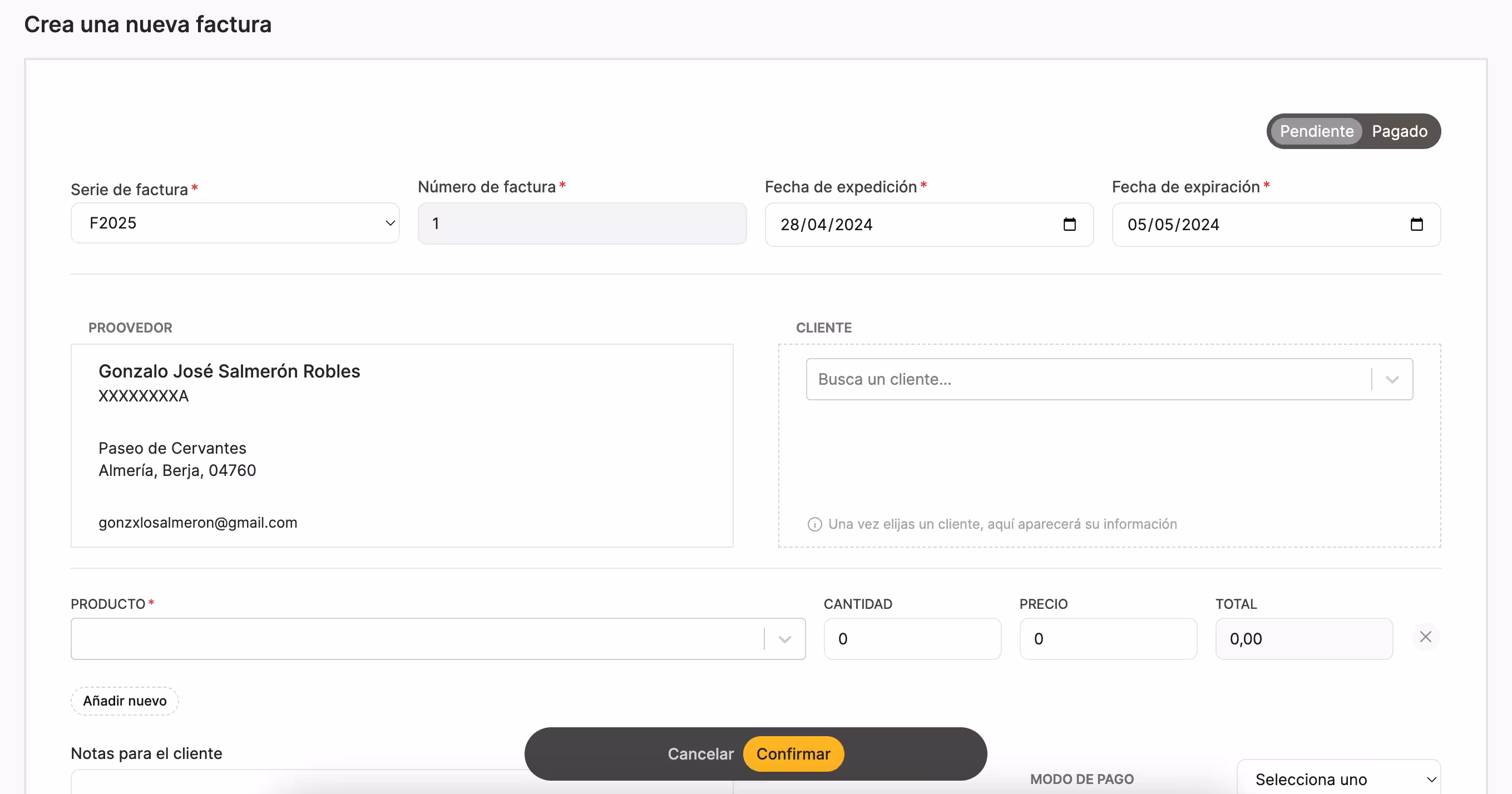 1. Rellena tu factura