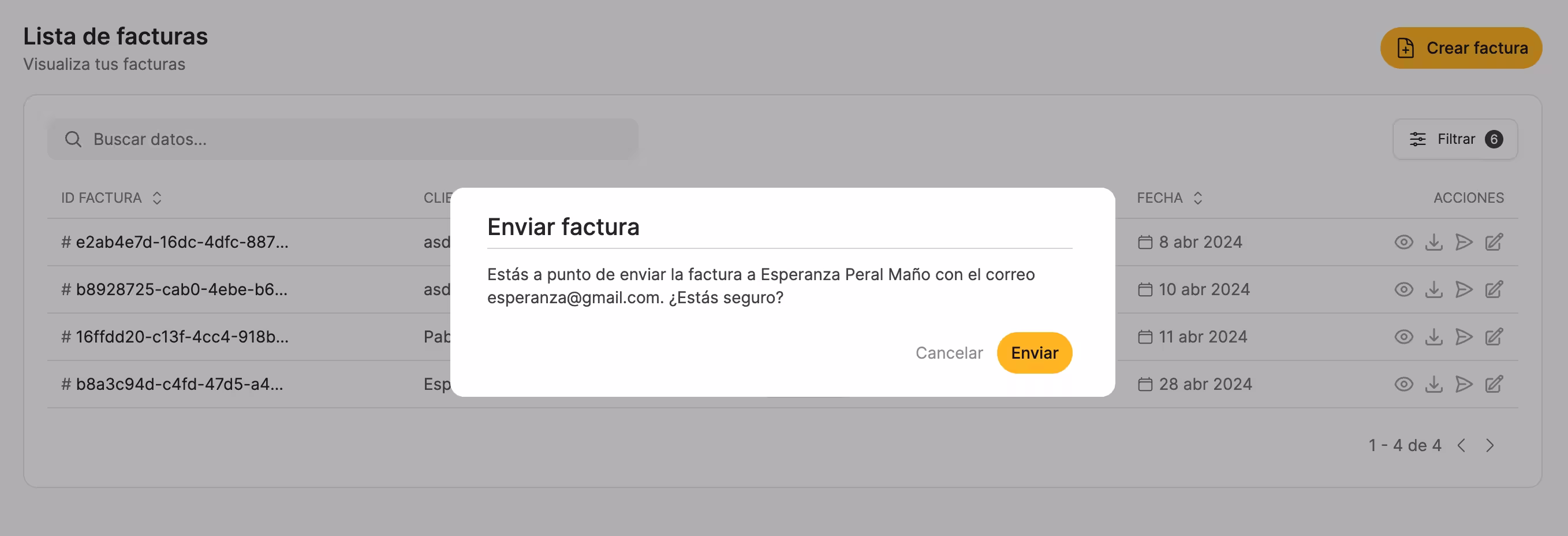 Env铆a facturas a tus clientes con tan solo un clic.